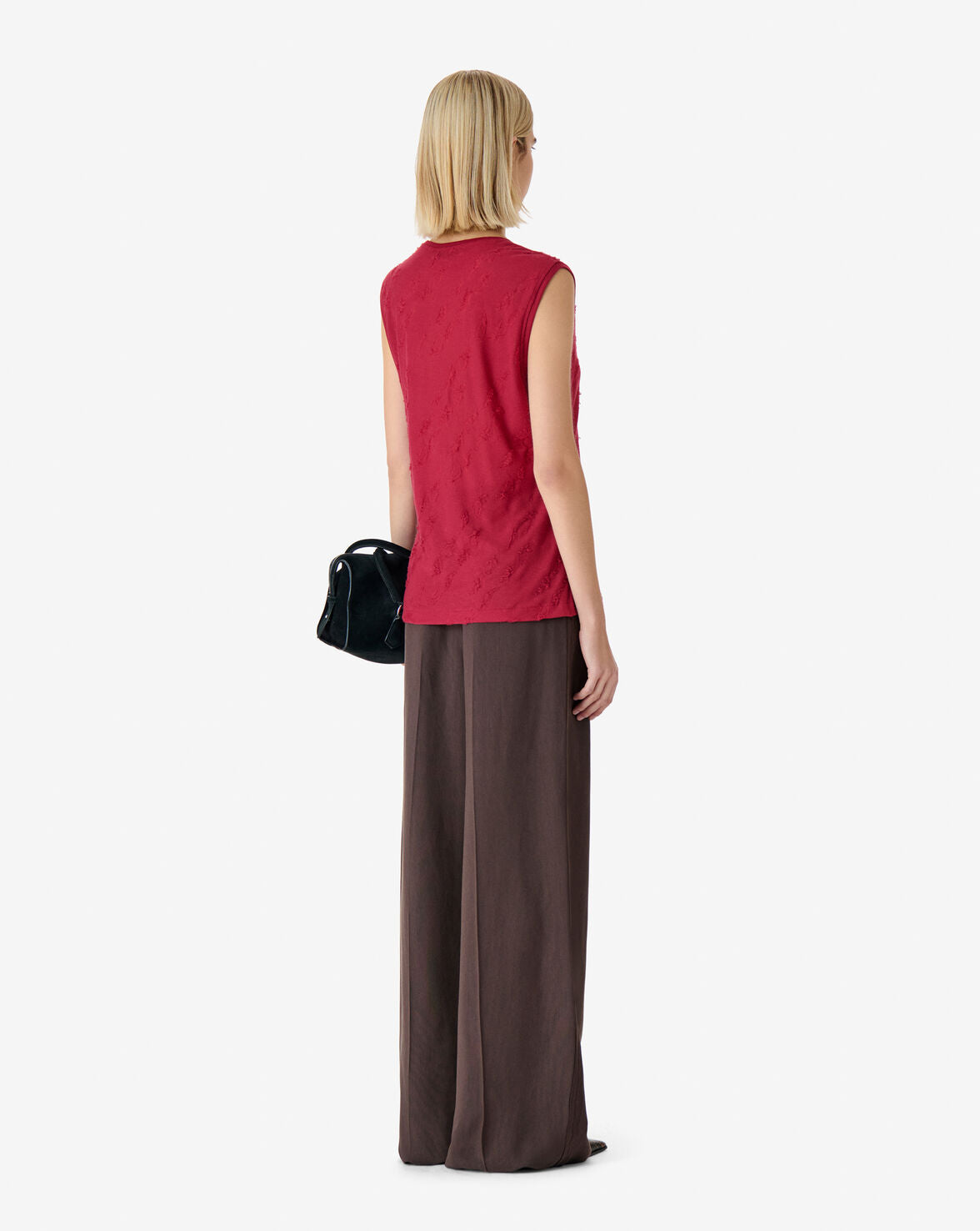 GLORIANA paisley jacquard sleeveless T-shirt. Round neckline with fitted cut and classic length. Made in Portugal.
